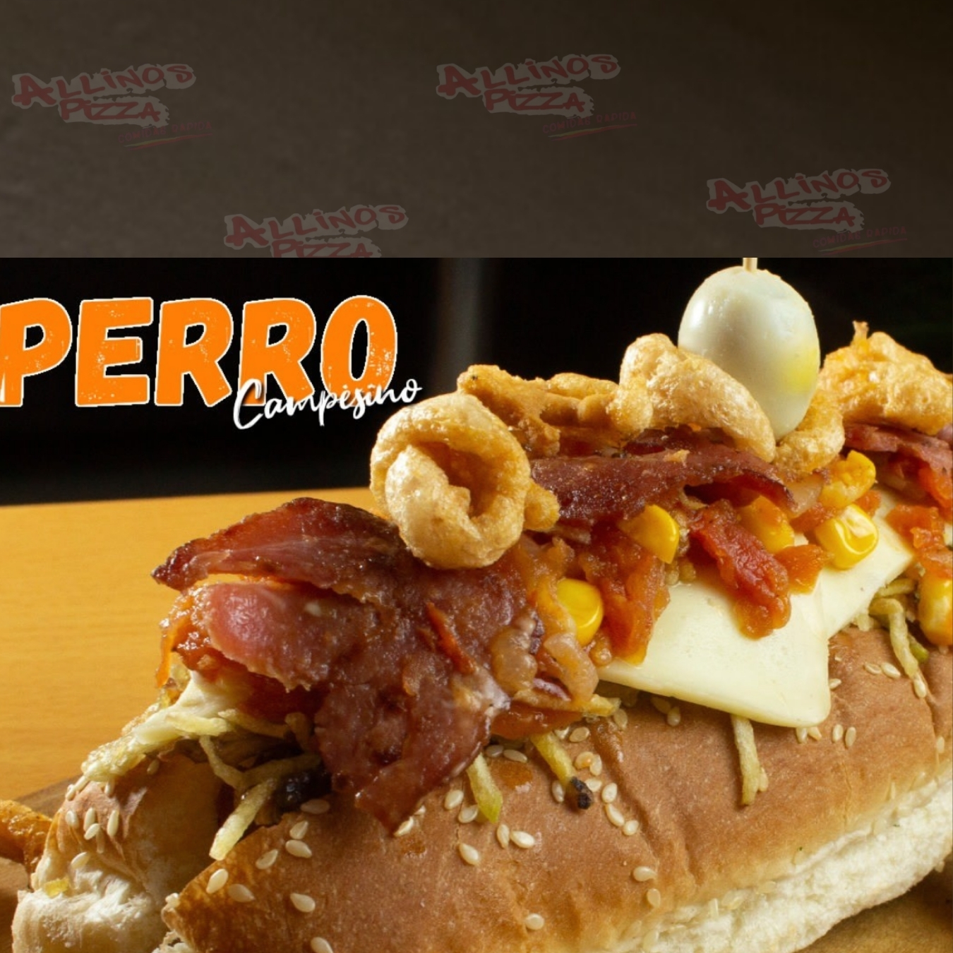 Salchicha Americana, papa chips, queso carne desmechada, hogao, chicharrón, huevo de codorniz.