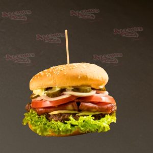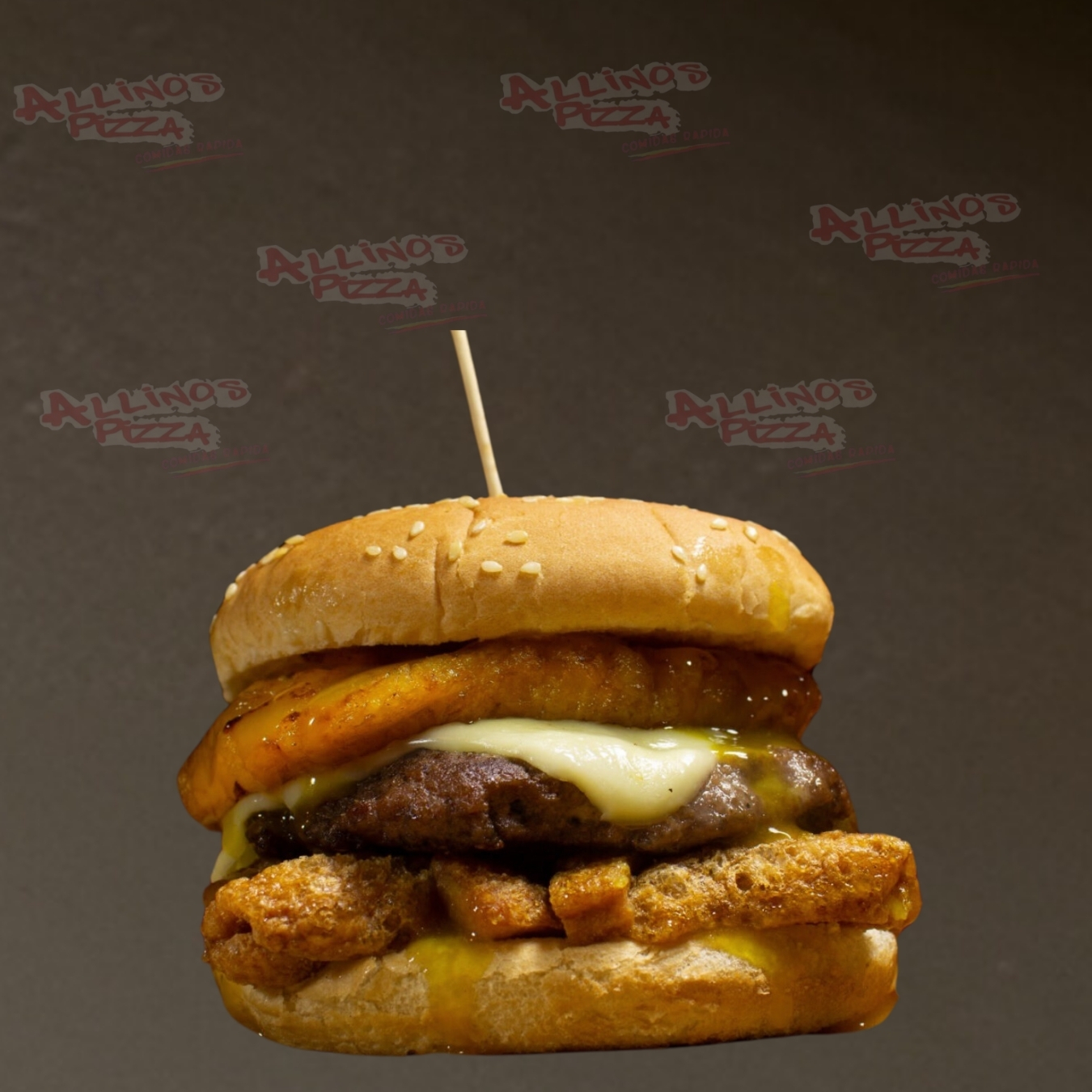 Carne de res, plátano maduro, chicharrón y miel mostaza.