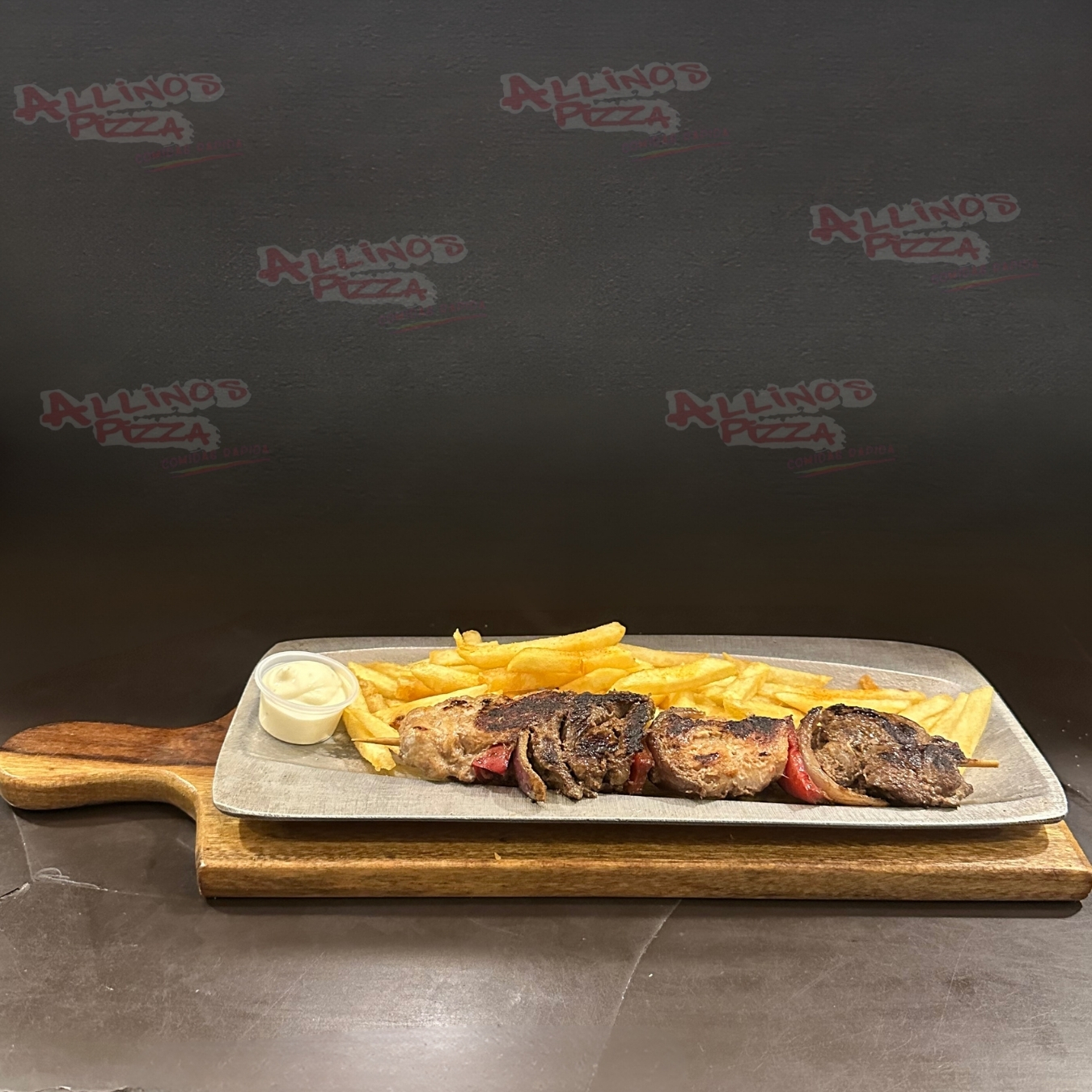 Carne, pollo y papa francesa.