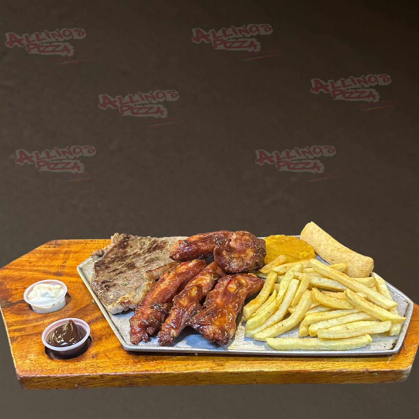 Complemento: Arroz, ensalada, papas a la francesa o papa criolla, yuca, patacón.