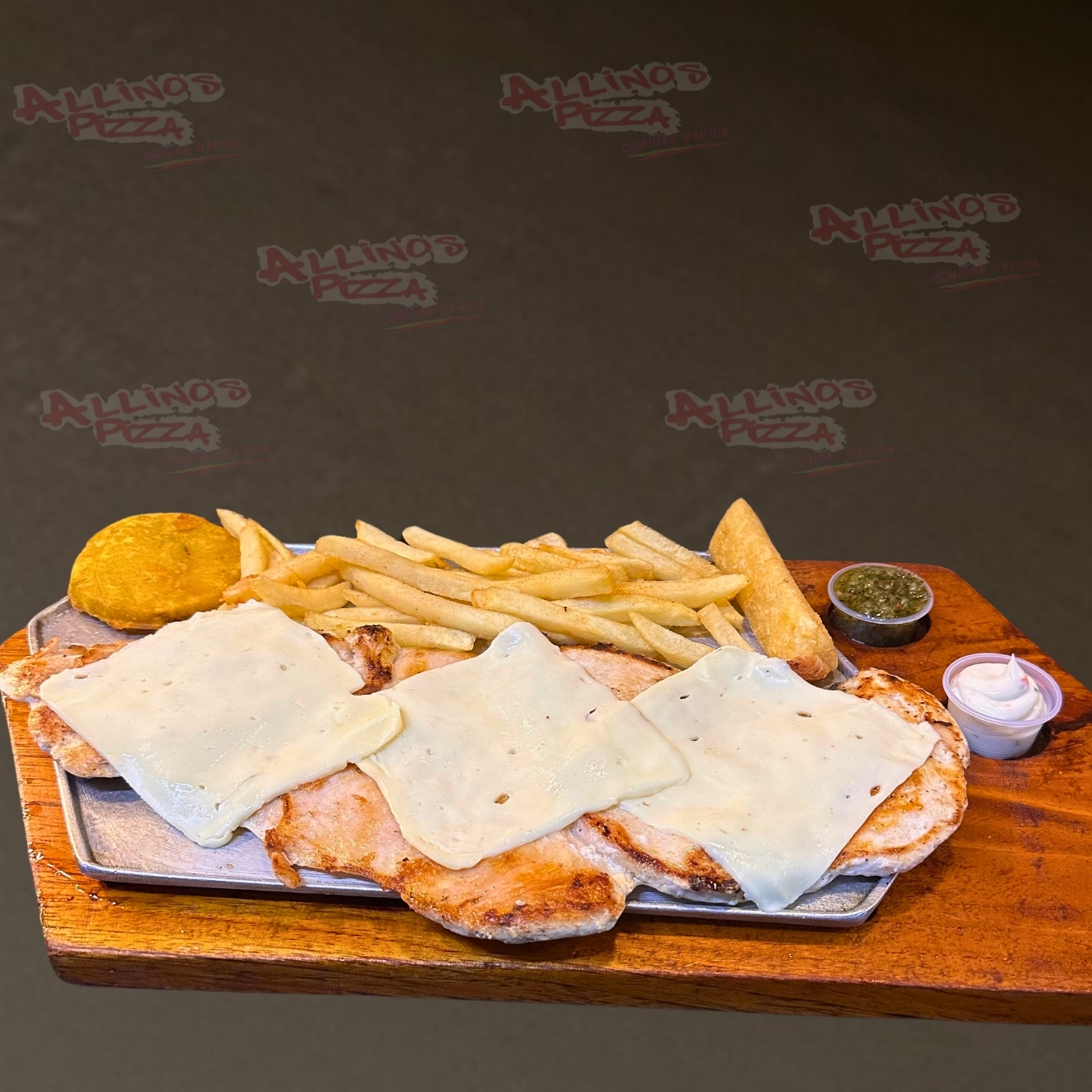 Complemento: Arroz, ensalada, papas a la francesa o papa criolla, yuca, patacón.